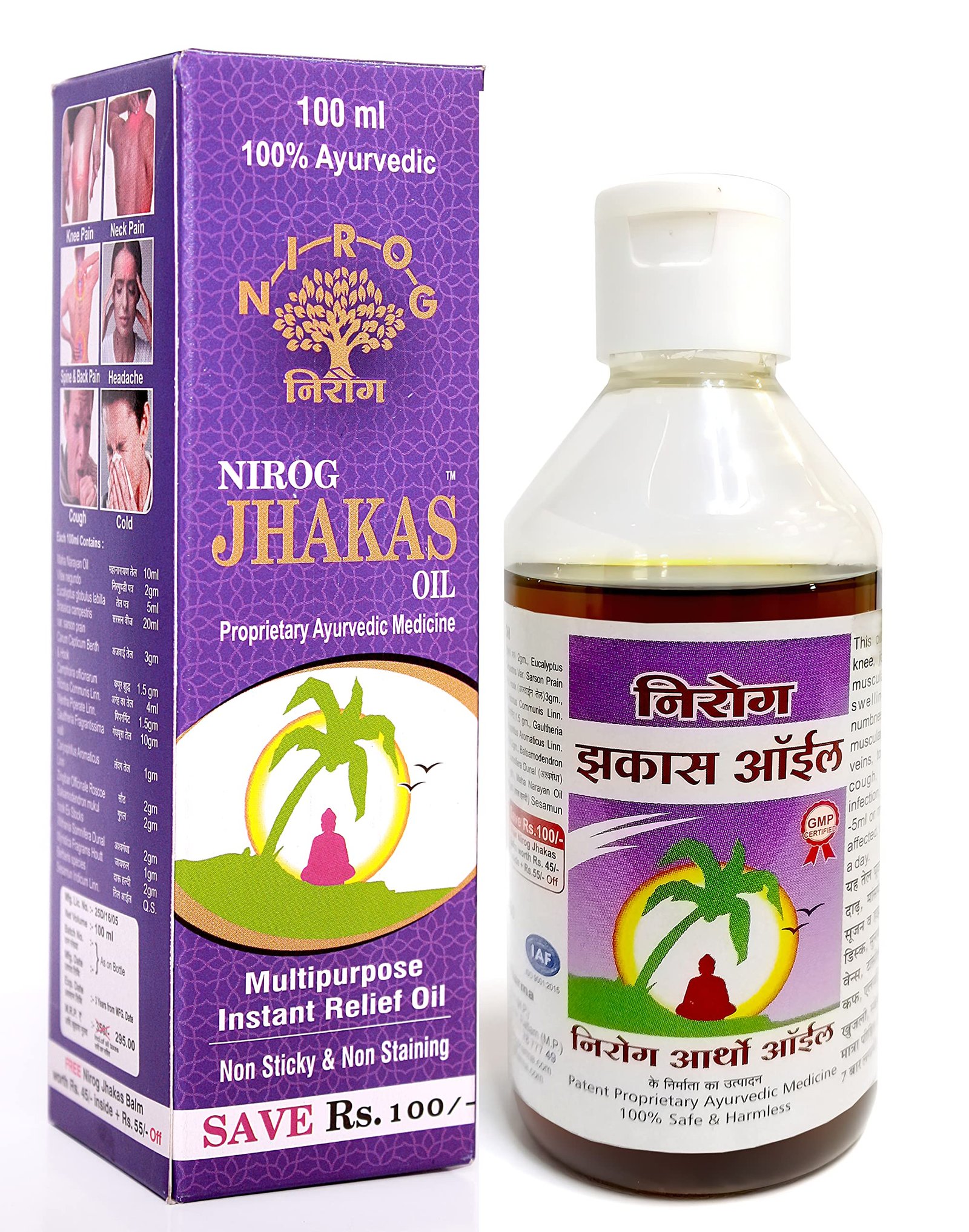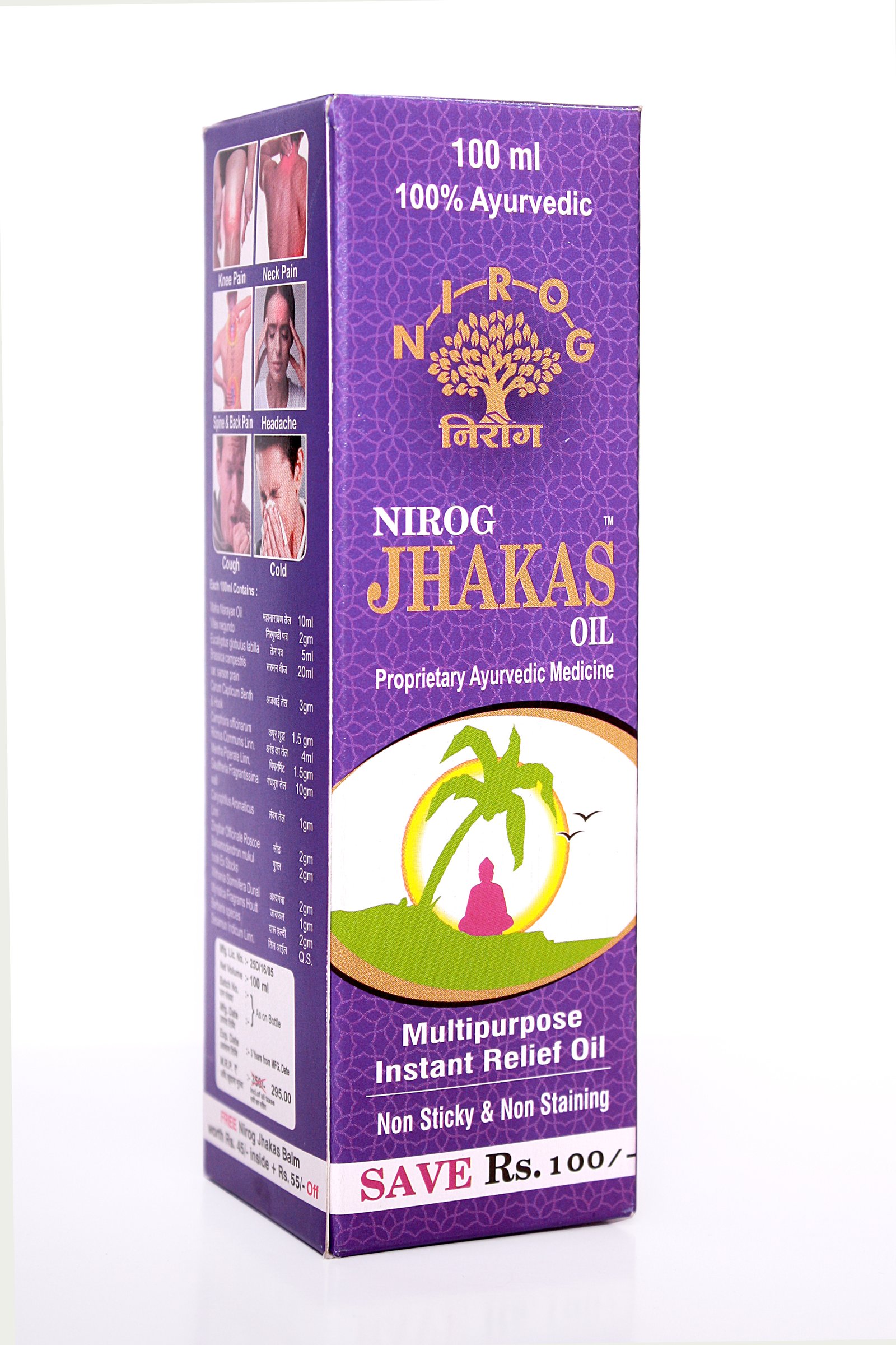 INGREDIENTS: Maha Narayan Oil, Vitex negundo, Eucalyptus globulus labilla, Brassica campestris var. sarson prain, Carum Capticum Benth & Hook, Camphoira officinarum, Ricinus Communis Linn., Mentha Piperate Linn, Gaultheria Fragrantissima wall, Caryophllus Aromaticus, Zingibar Officinale Roscoe, Balsamodendron mukul hook Ex Stocks-, Withania Somnifera Dunal, Myristica Fragrams Houtt, Berberis species, Sesamun Indicum Linn.QS.